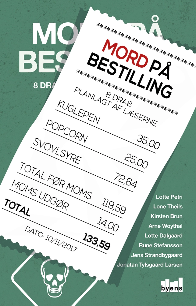 De medvirkende krimiforfattere er: Lotte Petri, Lone Theils, Kirsten Brun, Arne Woythal, Lotte Dalgaard, Rune Stefansson, Jens Strandbygaard og Jonatan Tylsgaard Larsen