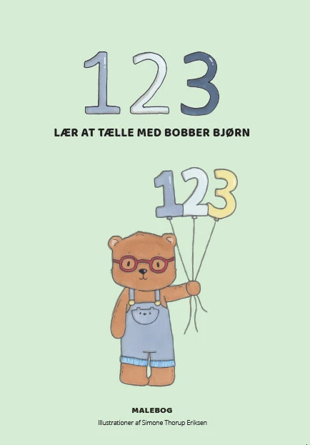 Lær at tælle sammen med Bobber Bjørn og farvelæg de fine illustrationer ved hvert tal.