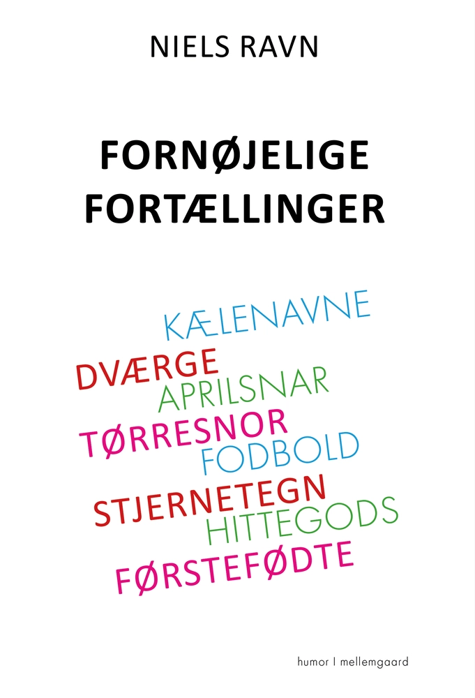 Fornøjelige fortællinger er en munter rundrejse til en række spøjse lokaliteter. Du vil møde gnavne gamle mænd og menneskets bedste ven samt støde på dumsmarte advarsler og uvidenskabelige love. Du inviteres på virtuelle besøg hos en perlerække af verdens mest ejendommelige museer, bl.a. et museum for udstoppede frøer i Kroatien, et toiletmuseum i Indien og penismuseet i Island. På rejsen underholder den kompetente og festlige rejseleder med grinagtige beretninger om dåsemakrel, hittegods, dværge, horoskoper, førstefødte og fodbold. Du lærer også golfspillets magiske univers at kende. På en smuttur til USA møder du Cards Against Humanity, der gør tykt grin med Black Friday. Du får også et spændende indblik i absurde erstatningssager, inden USA-trippet afrundes med spydige citater om Amerika og amerikanere. Tilbage i Danmark afsluttes rejsen med besøg på ti unikke museer og en gennemgang af spektakulære klager fra utilfredse rejsende. Uddrag af bogen Kærester har tilsyneladende en indbygget ubændig trang til at give hinanden de mest besynderlige og bizarre kælenavne. Her er et udvalg af sælsomme navne, som forelskede kvinder og mænd har tildelt hinanden: Nullergøj, Honningmås, Bandit, Musse, Hottie, Slikpige, Rullesteg, Sukkergris, Snuskebasse, Bimse, Honninghjerte, Tarzan, Trold, Guldbasse, Frækkert, Killer og Skattebasse. Der er ingen tvivl om, at kælenavnene er sødt ment, men når først forelskelsen og hvedebrødsdagene er overstået, og tilværelsen bliver mere ensformig og kedelig, skiftes de kærlige ord ud med øgenavne uden helt den samme varme og kærlighed. Her er, hvad en mand kan finde på at kalde sin snuskebasse, når hun er uden for hørevidde: Skrubtudsen, Halmballen, Kranen, Tjørnehækken, Rivejernet, Havgassen, Gimpen, Dullen, Kommandanten og Anacondaen. Nar manden ikke er til stede, kan kvinden i arrigskab smykke ham med lidet smigrende navne som: Båtnakken, Vismanden, Flødeskægget, Ugens Gæst, Sovesofaen, Karkluden, Brutalis og Havenissen. Uddrag af historien om Øge- og kælenavne Om forfatteren Niels Ravn er en glad og optimistisk pensionist, der sluttede sin erhvervskarriere som direktør i Nykredit. Han har som freelancer ved Danmarks Radio produceret mere end 125 radio- og TV-udsendelser og var idémand på rockmusicalen Be-Bop-A-Lula. Han har bl.a. skrevet Håndbog for iværksættere, to børnebøger, to Grinebøger og bogen Mini-portrætter.
