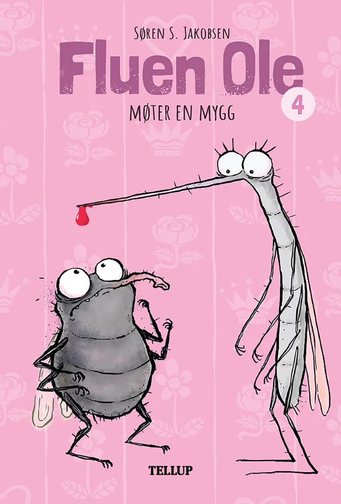 Men en kveld ser Ole en hun-mygg med vakre øyne.Forlagsbeskrivelse af Fluen Ole #4: Fluen Ole møter en mygg af Søren S. Jakobsen