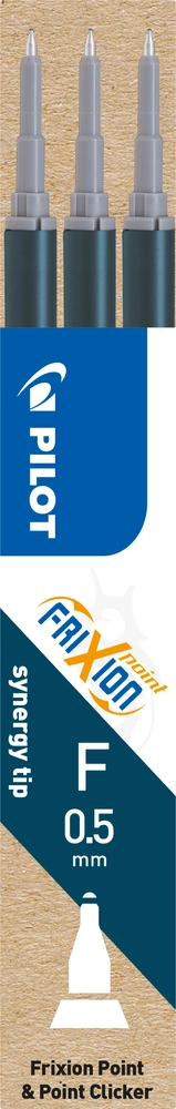 Sæt med 3 refills til FriXion Point Clicker kuglepen. Udskift nemt den brugte refill og din FriXion Point Clicker kuglepen er som ny igen. - Farve: blå/sort - Kuglebredde: 0.5 mm - Skrivebredde: 0.25 mm - Kan viskes ud