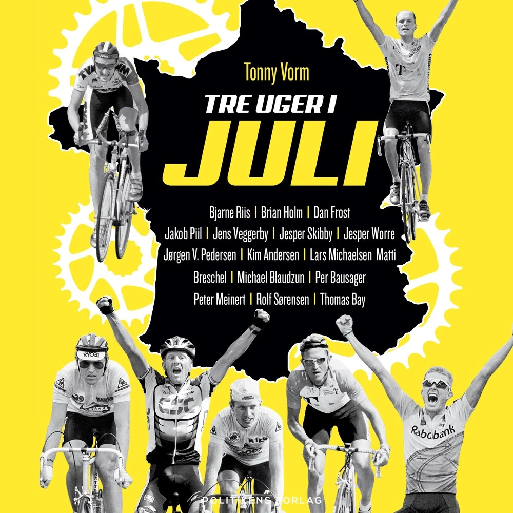 Tre uger i juli er et festfyrværkeri af cykelhistorier og et underholdende portræt af en sportsbegivenhed, der er mere populær end nogensinde. Bogen er skrevet af journalist og forfatter Tonny Vorm i samarbejde med blandt andre: Bjarne Riis, Brian Holm, Per Bausager, Rolf Sørensen, Jesper Skibby, Jens Veggerby, Jesper Worre, Jørgen V. Pedersen, Kim Andersen, Jakob Piil og Matti Breschel.