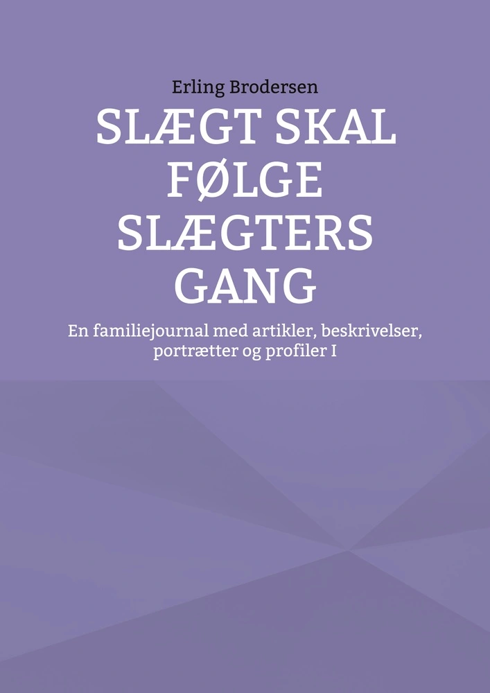 Udgående fra sine fire bedsteforældre begyndte forfatteren i sommeren 2014 at skrive foreliggende omfattende slægtsværk, hvori læseren i tilknytning til personer finder en mængde oplysninger om alt muligt samt specielt spændende artikler og beskrivelser af forskellige art tillige med en række portrætter og profiler: I dette bind, hvori slægterne Brodersen, Harrsen, Dircks, Müller og mange andre fremstilles, kan bl.a. nævnes følgende: Aspekter af Reformationen, dens følger samt Luthers indflydelse på Det Tredje Rige m.m. - Dødedans - Saloner - Billedhuggerinden Anne Marie Carl-Nielsen f. Brodersen og komponisten Carl Nielsen - Slægten Brodersen på Thygesminde i Sdr. Stenderup - Brodersen og Lund på Spjarupgård i Egtved - Fuglsang - Sanne og Svend Brodersen til Gram - Tegneren Peter Madsen - Birte- og forfatteren Finn Søeborg - Forfatteren Chilli og Dan Turell - Mary Harrsens og onkel Willis erindringer - Teologen Quasten - Amalienborg og operabranden - Odense Slot, Sankt Hans Kloster og Kirke samt Brandstationen - Sankt Knuds Kloster og Domkirke i Odense m.m. - Teaterminder - Castel Gandolfo og Santa Maria in Traspontina...