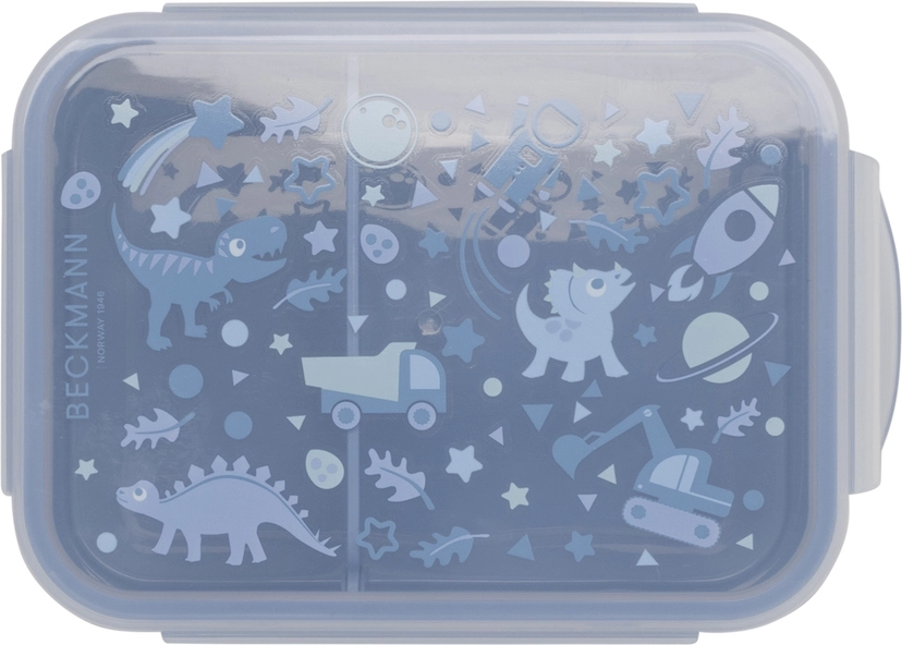 Madkassen fra Beckmann er helt tæt og har en praktisk skillevæg. Der er endda plads til en lille yoghurt.