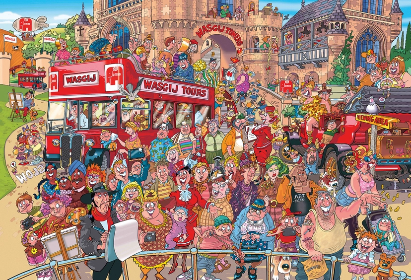Udfordringen ved Wasgij puslespil er, at det billede du ser på æskens låg, kun giver en række ledetråde til puslespillets motiv. Wasgij er det engelske ord for puslespil - jigsaw - stavet bagfra, hvilket giver en god indikation på, hvor udfordrende Wasgij puslespil kan være.