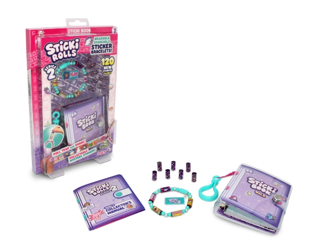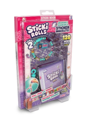 Denne pakke indeholder et Sticki Rolls-armbånd med helt nye Serie 2-klistermærker, 7 ekstra MYSTERY Sticki Rolls og en sjov og interaktiv bog med 50 helt nye aktivitetsider, der hjælper dig med at holde styr på din Sticki-samling.