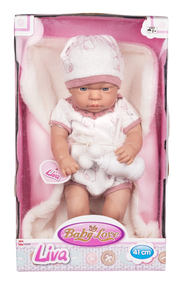 My Baby Liva softbodydukke 40 cm med tæppe Inkl. sutteflaske