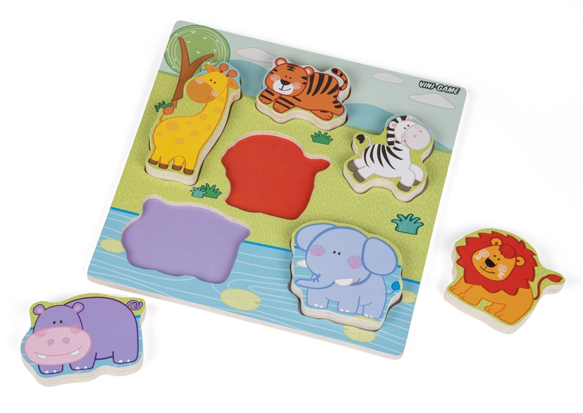 Produktbeskrivelse af VINI KNOPPUSLESPIL MED DYR ass