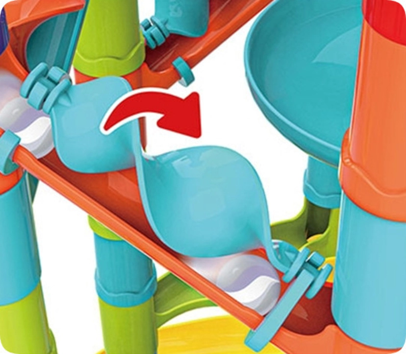 De dynamiske banedele er nemme at sætte sammen og giver uendelige muligheder for kreativ leg, samtidig med at børn udvikler koordination, logisk tænkning og finmotorik. Perfekt til nysgerrige små hænder og store ideer!