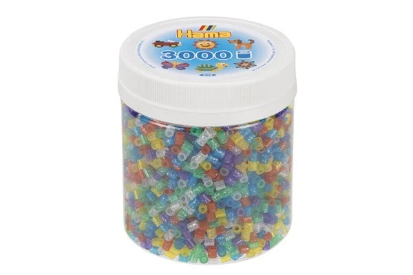 Hama midi perler bæger 3000stk transp. glitter mix