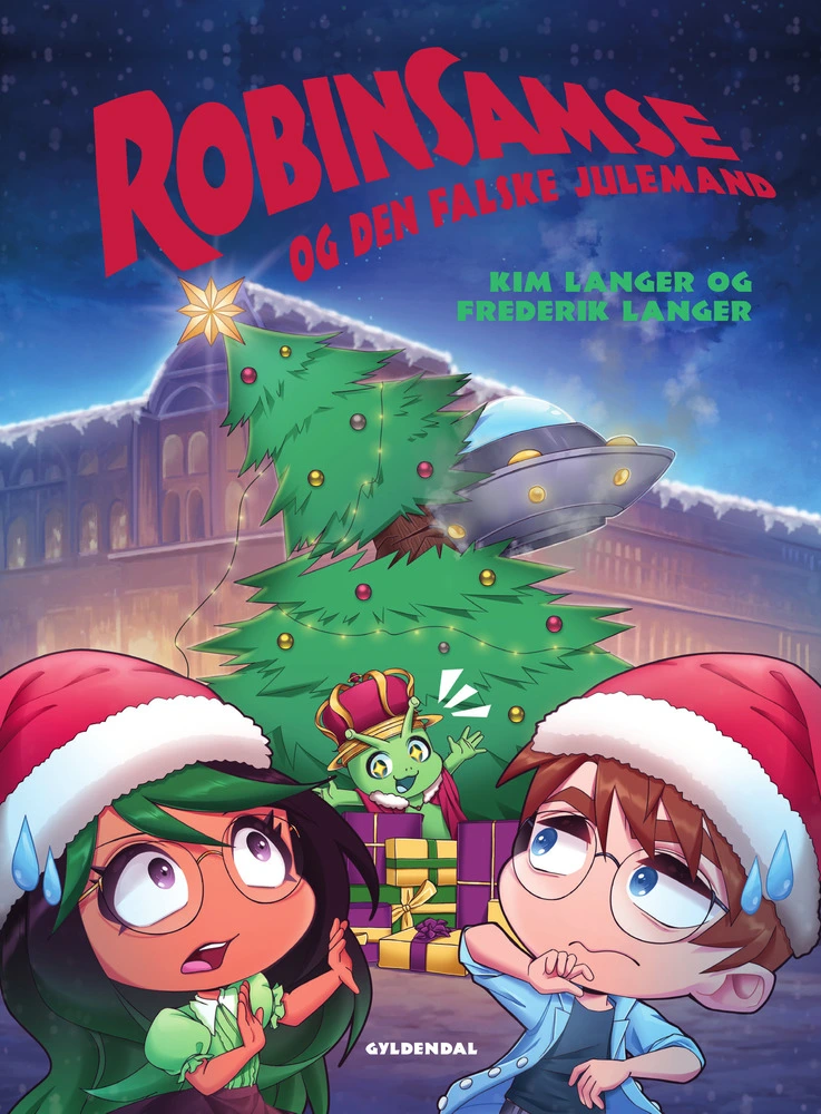 Kong Bertil af Mars har planlagt et julevisit til Jorden for at besøge Robin og Samrita. Men landingen går ikke helt efter planen, og hans rumskib styrter ned og vælter det store juletræ på byens torv...Forlagsbeskrivelse af RobinSamse og den falske julemand af Kim Langer