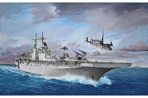 • Vandlinjemodel • Indvendigt servicedæk • Fly og helikoptere • Indeholder mærkater til 4 Wasp-klasse skibe (USS Wasp, USS Essex, USS Kearsarge, USS Boxer)