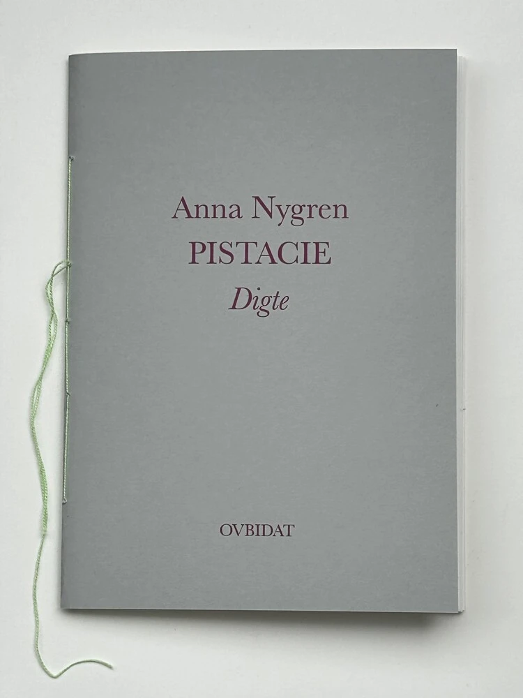 Pistacie er en queer coming-of-age-historie om pigethed, kroppe og  begær. Det er en digtsamling, der handler om at være teenager og forelsket i sin bedste veninde, om snegle, der sover i skoven, og om kærlighed og had. Anna Nygren er forfatter, kunstner og litterat. Den debuterede i 2020 med Pistacie og romanen Hunger. Dens nyeste udgivelse, Hästhjärta / Pissråtta, vandt den svenske  queer litteraturpris Prisma i kategorien børn og ungdom.