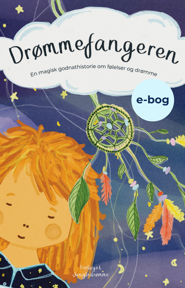 Velkommen til historien om Drømmefangeren fra Drømmejunglen. Drømmefangeren er en magisk godnathistorie om følelser og drømme. Hubert har mistet sin drømmefanger og uden den, har han svært ved at sove. Derfor må han på en tur rundt til Drømmejunglens dyrebørn for at finde hjælp. Mens Hubert leder efter sin Drømmefanger, må han håndtere svære følelser som skuffelse, angst og vrede. Heldigvis har han både søde venner og en magisk fantasi, så det hele skal nok ende godt. I slutningen af bogen guides barnet gennem søvndyssende hypnoseteknikker, der kan hjælpe med at skabe ro, så barnet kan falde trygt i søvn. Bogen kan inspirere til gode samtaler om følelser og drømme og omkring, hvordan både svære og beroligende følelser smitter. Den indeholder desuden kreative tegneøvelser samt viden om børns drømme. Historien er udviklet af læge og klinisk hypnoterapeut Anna Knakkergaard, der har stor erfaring med behandling af søvnproblemer hos både børn og unge. Bogens mange fine illustrationer og det visuelle univers er skabt af arkitekt og illustrator Julie Dam. Den primære aldersgruppe er 4-10 år, men både yngre og ældre børn har også glæde af de beroligende historier. TIP: Drømmejunglens berolingende univers findes også som lydbog og app. Samme forfatter er aktuel med bogen 'Drømmejunglen' (ISBN: 9788797294505) der indeholder seks søvndyssende godnathistorier baseret på hypnoseteknikker.
