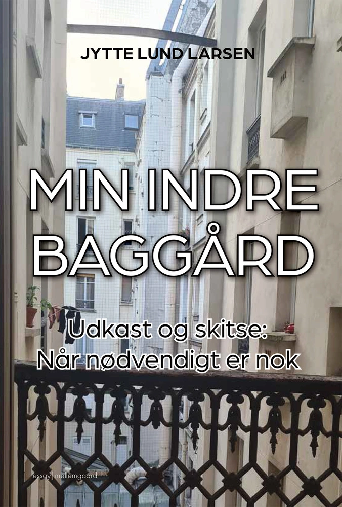 Udkast – skitser er en slags forløbsforståelse, der lidt efter lidt giver forståelsen af essensen, når forløbet er slut. Min indre baggård er synonymt med at kigge indefra og ud, og essensen er så at finde ud af, hvorNår nødvendigt er nok. Jytte Lund Larsen vælger at kalde det udkast og skitser, da hun med korte tekster ønsker at sætte refleksioner i spil til overvejelse af, hvorNår nødvendigt er nok. Tænker man på livet som et rum eller en container, må man rydde op og sætte livslæring i et nyt perspektiv. I virkeligheden er individet en slags livskunstner, der som en maler sætter refleksioner og tanker på lærred. Impressionisme er små øjeblikke, der skaber en helhed. Ofte bliver helheden stærkere ved at fravælge. Minimalisme er ofte et fravalg, og måske sker der en opgradering af det, man har i livet, fysisk og psykisk.